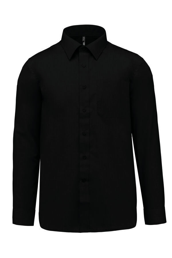 Chemise homme. Col avec pointe de col baleinée. Boutons ton sur ton. Poche poitrine côté gauche à angles arrondis. Empiècement dos double. Poignet réglable à angles arrondis avec patte de manche capucin boutonnée. 2 boutons de rappel. Bas arrondi. Finition coutures rabattues.