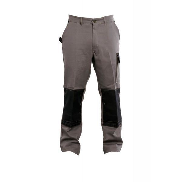 Pantalon à poches genouillères bicolore. Ceinture élastiquée dos et boutonnière de réglage intérieure. Braguette à glissière nylon. Pinces dos. 2 poches italiennes sac de poche dans le même tissu et entrée de poche noire. 1 poche cuisse à soufflet rabat fermé par Velcro®. Double-poche porte-outils, accroche-marteau. Poche téléphone. Poche dos rabat Velcro®. Poches genouillères Cordura® 2 positions fermées par bandes Velcro®. E.J. : 82 cm.