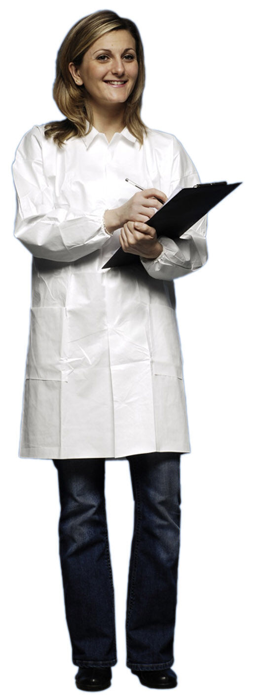 Blouse cousue mixte. Col chemisier. Fermeture par 4 boutons-pression. 2 poches basses plaquées. Poignets élastiqués.