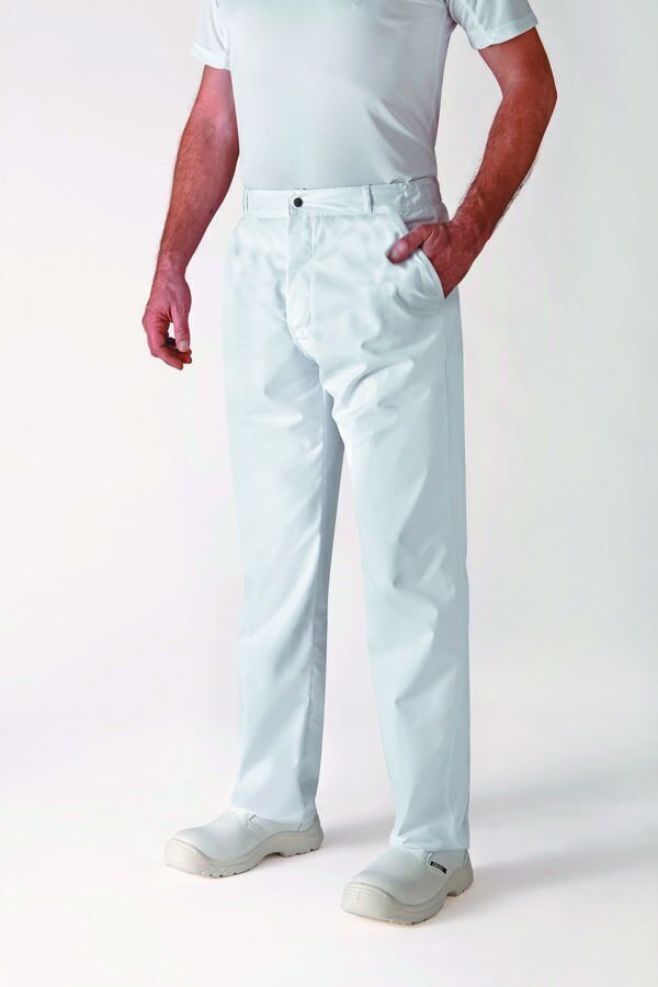 Tunique homme, col mao. Fermeture milieu devant par boutons-pression sous patte. Poche poitrine, 2 poches BIP, 2 poches basses dans découpe coté. Col et côtés contrastés. Manches courtes. Fentes cotés. Longueur : 78 cm.