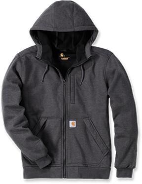 Veste softshell type sweat-shirt. Capuche réglable avec cordon de serrage. Col montant. Fermeture centrale par zip YKK®. Poche poitrine zippée. 2 poches frontales avec rabats et étiquette Carhartt® cousue. Poignets et tour de taille bord-côte. | Technologie Lifa® Stay Warm.