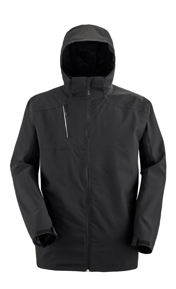 Parka ripstop stretch imperméable et respirante. Capuche réglable et amovible par pressions cachées. Fermeture zippée étanche avec protège-menton. Poche poitrine zippée étanche rétroréfléchissante. Poches côtés à fermeture à glissière cachées dans la découpe. Poche intérieure fermée par Velcro®. Poignets réglables par patte auto-agrippante. Bas de parka réglable par cordon élastiqué et stoppeur. Doublure filet mesh. | Trappe de marquage. Système d'attache de la parka avec la veste hybride CARPATES.