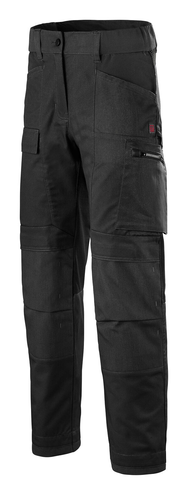 Pantalon bi-matière femme. Ceinture élastiquée aux côtés. Insert lombaire en bord-côte extensible. 2 poches italiennes. Fond de poche et arrière de la cuisse en Ripstop stretch Cordura®. Côté droit : poche cuisse fermée par rabat avec auto-agrippant. Poche mètre avec bas volant en Cordura®. Côté gauche : poche type cargo avec soufflet en Cordura® fermée par zip. Poches genouillères préformées, renforts bas de jambes et ourlet en Cordura®. Rehausse dos. | Mercerie tout plastique. Coupe ajustée. E.J. : 78 cm (+ 5 cm).