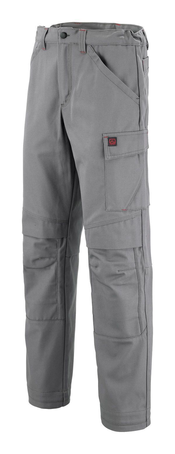 Pantalon à poches genouillères. Ceinture élastiquée côtés. 2 poches italiennes, 1 poche cuisse à soufflet et rabat auto-agrippant et surpoche smartphone, 1 double poche mètre. 2 poches mousses genoux fermées par bandes auto-agrippantes. | Mercerie tout plastique. E.J. : 82 cm (+5 cm).