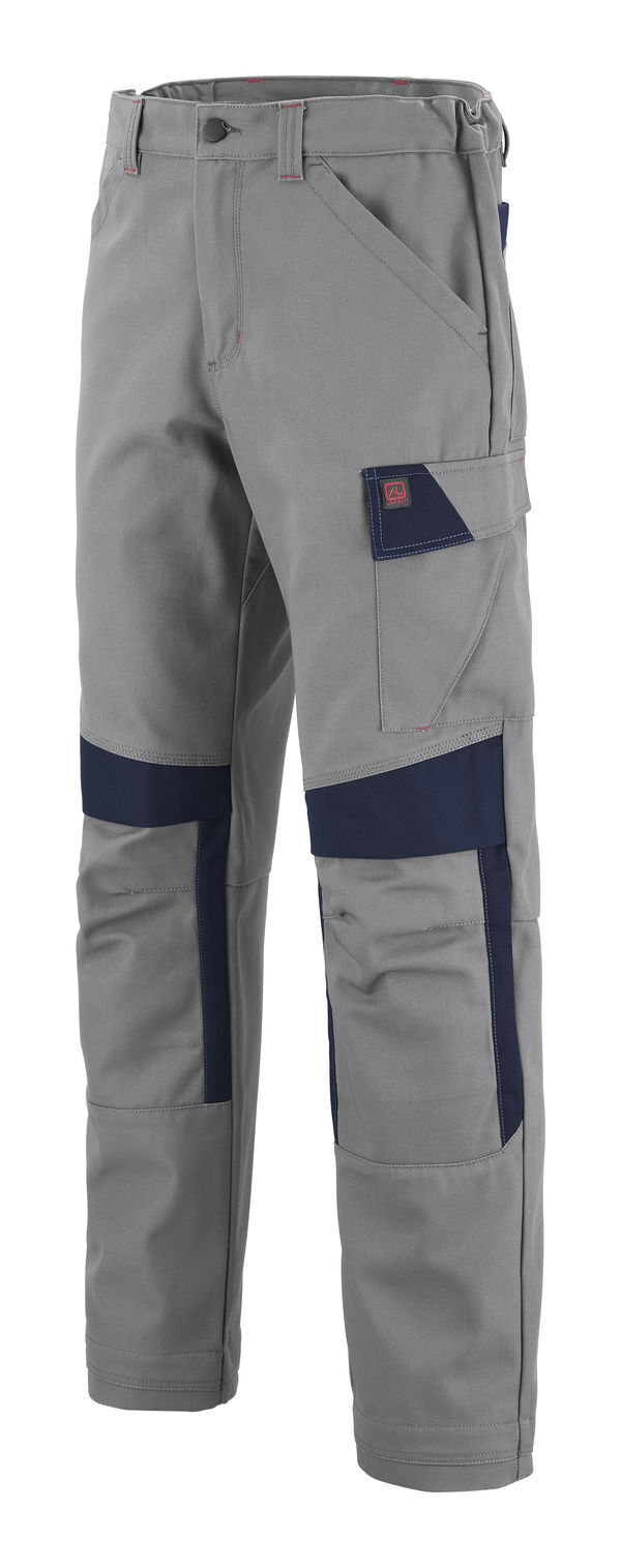 Pantalon à poches genouillères. Ceinture droite élastiquée côtés, fermée par bouton clou. Collerette de marquage. Braguette zippée. Poches italiennes doublées. Poches revolver plaquées. Panneau d’aisance à l’entrejambe. Double poche mètre avec bas volant. Poche cuisse gauche avec soufflet central, sous rabat fermé par Velcro® cachés. Pinces jambe dos. Poches genoux 2 niveaux de réglage avec rabat fermé par Velcro®. Bas de jambes évolutifs. Mercerie tout plastique. Surpiqûres contrastées. E.J. : 82 cm (+ 5 cm).