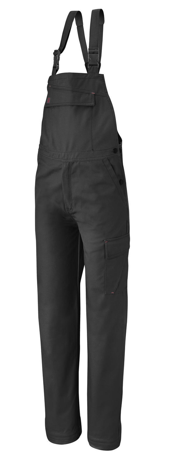 Cotte à bretelles. Bretelles avec boucles clic-clac. Fermeture devant à glissière bord à bord. 2 poches poitrine plaquées fermées par auto-agrippants. 2 poches italiennes. Poche cuisse à soufflet, rabat et surpoche smartphone. Double poche mètre. Poche revolver à l'arrière. Mercerie tout plastique. E.J. : 82 cm (+ 5 cm).