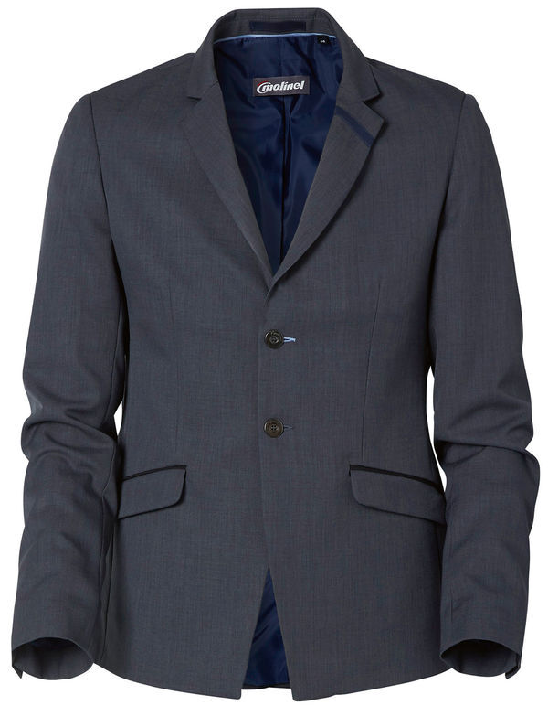 Gilet de service homme. Encolure V avec biais contrasté. Fermeture centrale 5 boutons, finition fil contrastant bleu glacier pour la boutonnière supérieure. Découpe devant, 2 poches basses passepoilées contrastantes, 1 poche intérieure, patte de serrage dos.
