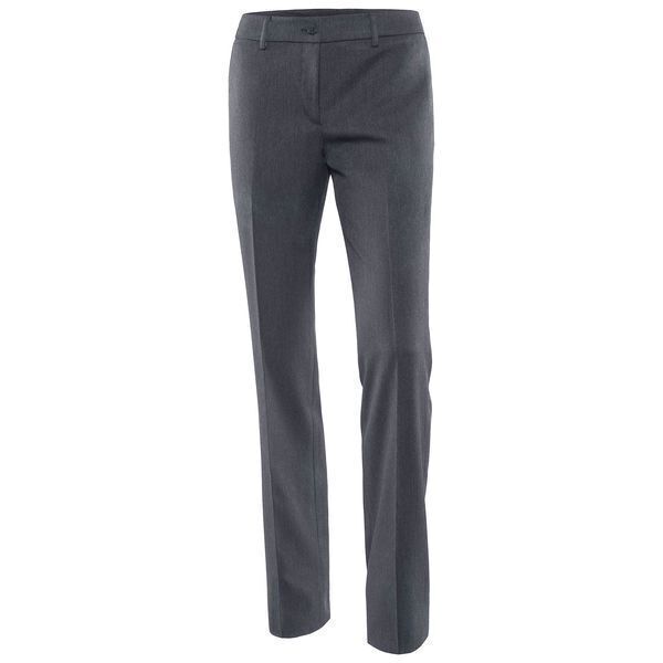 Pantalon femme. Ceinture 5 passants fermée par 1 bouton et 1 bouton intérieur. Braguette à glissière. Poches italiennes. Plis devant et dos marqués. Pinces dos. Bas de jambe non fini. E.J. : 90 cm.