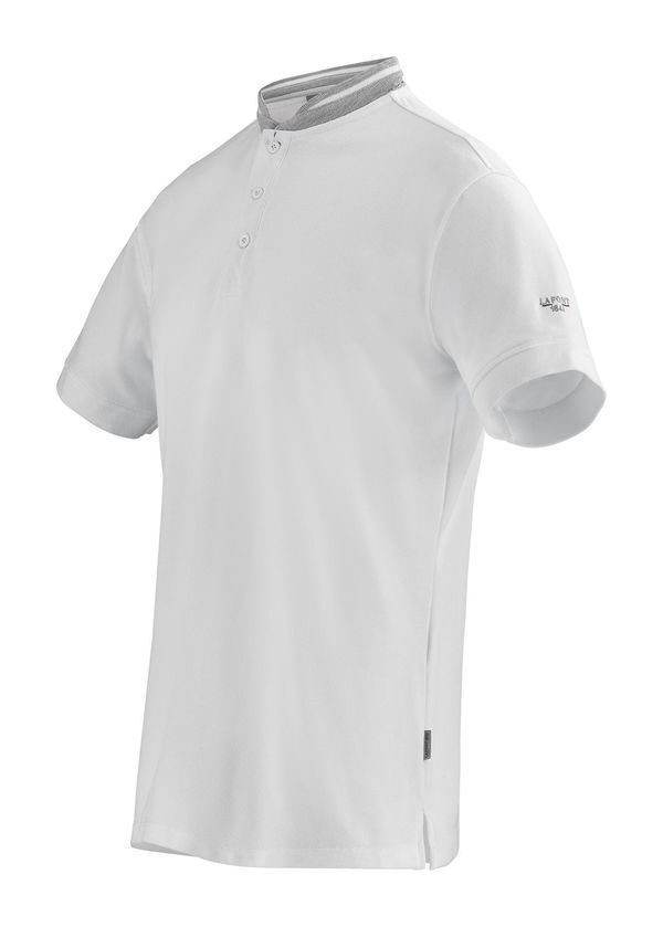 Polo homme à col officier. Patte de boutonnage 3 boutons. Col et bas de manche en bord-côte. Fentes aux côtés. Broderie LAFONT 1844 sur manche gauche