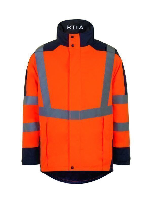 Parka haute visibilité. Col montant doublé polaire. Fermeture à glissière double curseur sous double rabat pressionné avec gouttière. Capuche amovible avec visière réglable par cordon de serrage. 1 poche Napoléon avec support carte d'identification, 1 poche intérieure, 2 poches basses avec rabat et fermeture à glissière. Manches préformées. Bas de manches avec pattes auto-agrippantes. Dos protège-reins. Coutures étanchées. Trappe d'accès pour le marquage. | Bande microbille rétroréfléchissante de largeur 50 mm.