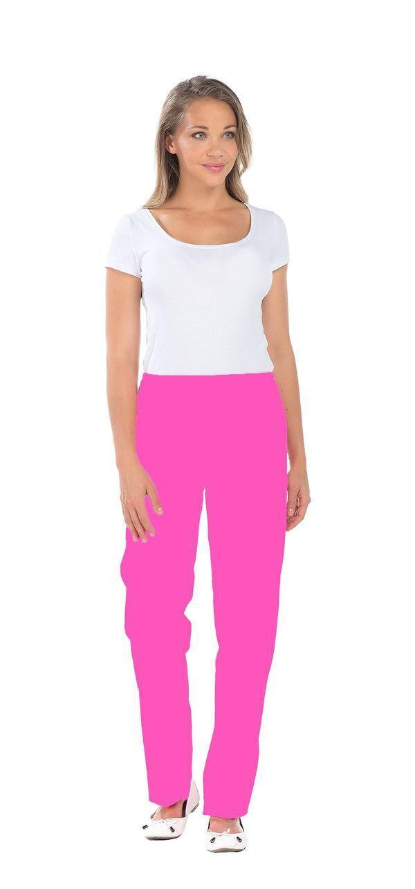 Pantalon femme. Taille semi-élastiquée effet ventre plat. 2 poches italiennes. E.J. : 82 cm.
