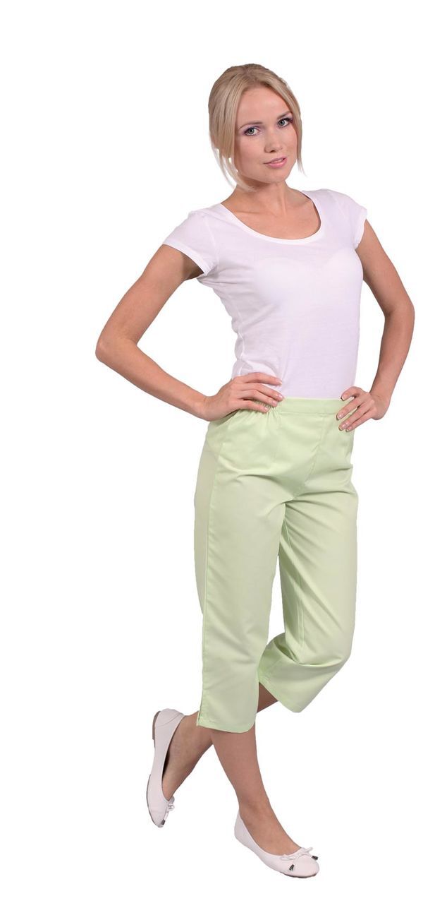 Pantacourt femme. Taille semi-élastiquée effet ventre plat. Sans poche. Fentes latérales bas de jambe. E.J. : 52 cm.