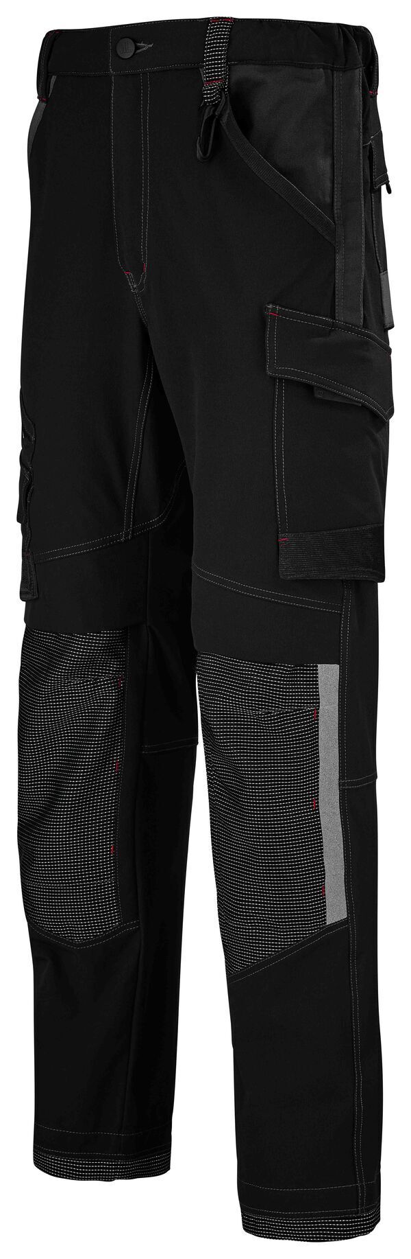 Pantalon à poches genouillères full stretch. Ceinture avec passants, élastiquée aux côtés et fermée par bouton. Braguette zippée. "D" en plastique passant devant gauche. Panneau d'aisance à l'entrejambe. 2 poches italiennes avec enforme. Poche cuisse gauche avec renfort et fermée par rabat à 2 pressions cachées. Poche droite zippée avec renfort. Poche mètre. Porte outils. Poches genoux en Cordura® avec ouverture par le haut, fermée par patte auto-agrippante. Poches arrières plaquées avec renfort. Bas de jambe avec renfort Cordura®. | E.J. : 82 cm (+5 cm)