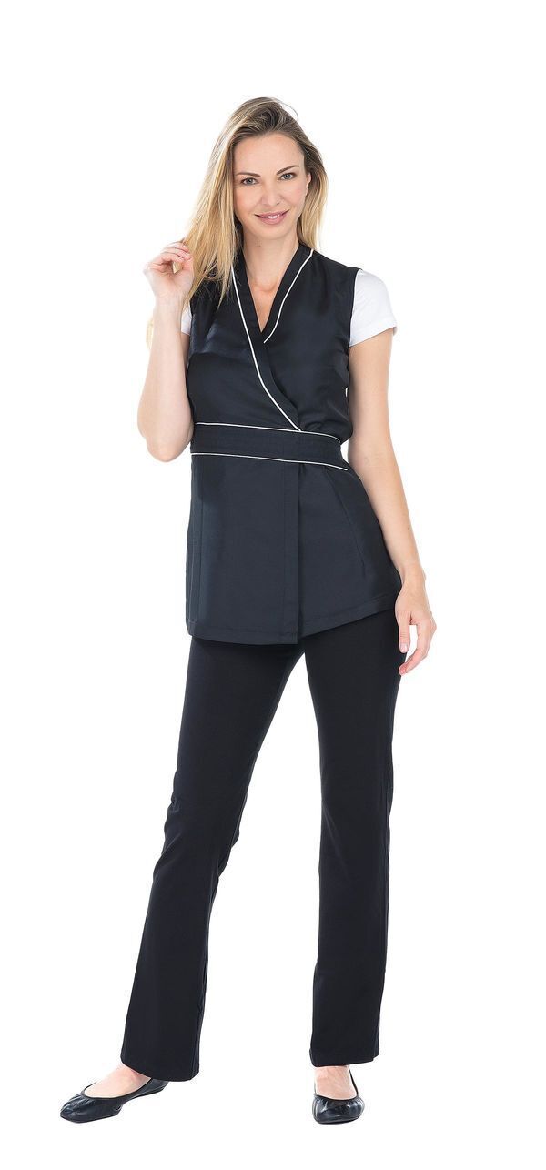 ceinture et lien. Passepoil contrasté à l'encolure et ceinture. Sans poche.