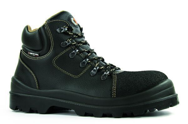Chaussures de sécurité homme. Tige cuir fleur hydrofuge. Semelle de propreté GIOVE®. Doublure Unilining respirante. Embout non métallique UNICOMP® 200 J. Insert anti-perforation en acier. Semelle externe Solagrip PU.