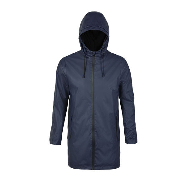 Ciré homme. Capuche doublée en jersey avec cordon de serrage. Fermeture centrale par zip étanche bidirectionnel et protège-menton. 2 poches basses zippées. Coutures thermosoudées. Dos finition queue de pie. | Imperméabilité : 5000.