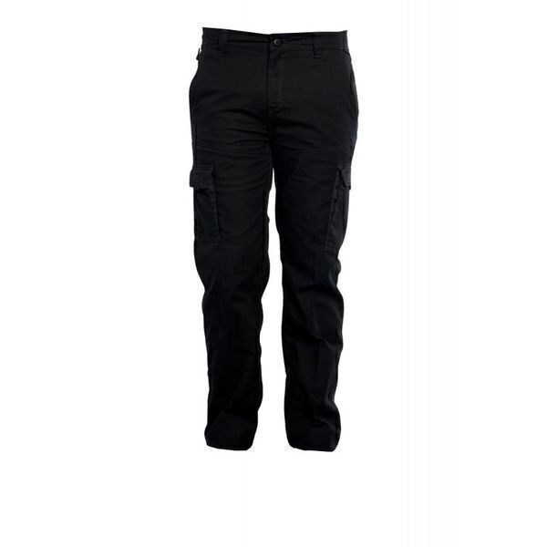 Pantalon stretch, ceinture droite avec passants. Fermeture centrale par bouton. Braguette zippée. Renfort à l'entrejambe. 2 poches italienne. 2 poches cuisses à rabat et soufflet contrastés, dont une poche de sécurité fermé par zip. Poche téléphone. Réhausse dos. 2 poches plaquées dos dont une à rabat. Finition par ourlets. Coupe ajustée, E.J: 82 cm (+5 cm).