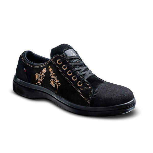 Chaussures de sécurité femme. Tige en cuir. Doublure textile 3D micro-aéré. Embout acier. Insert anti-perforation textile haute ténacité.