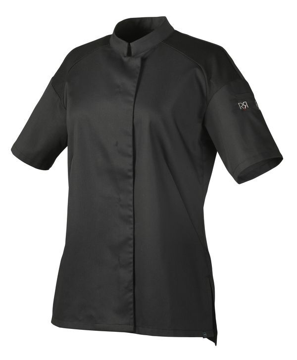 Veste femme thermorégulante. Col officier. Fermeture milieu devant par boutons-pression cachés. Pinces devant. Empiècement en maille aux épaules devant et dos. Manches courtes. Poche stylo sur manche gauche. Fentes d'aisance côtés. Coupe ajustée. Matières thermorégulantes 37.5®.