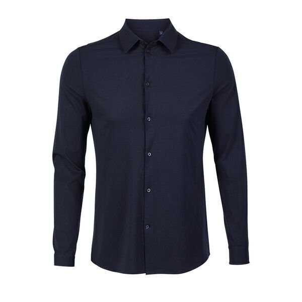 Chemise homme en jersey. Col italien. Boutonnage 7 boutons ton sur ton. Manches longues. Poignets arrondis 2 boutons ajustables et patte capucin. Jersey mercerisé.